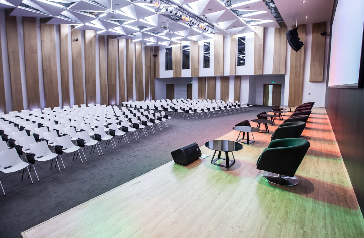 продуманная расположение зон (лекционный зал, регистрационная зона, зона кофе-брейка), удобные стулья и столы - все для того, чтобы участники чувствовали себя комфортно и могли сконцентрироваться на информации.
